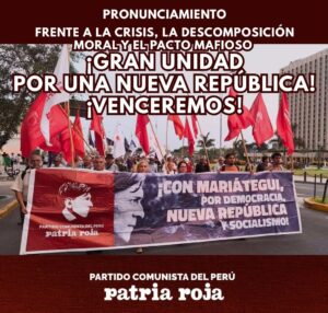 bandera a la que nunca renunciaremos, el marxismo leninismo y el pensamiento de Mariátegui nuestra guía. - Vivimos tiempos de grandes cambios y tormentas. Así es en plano mundial, latinoamericano, también nacional. Entendemos bien la ofensiva del imperialismo norteamericano y los riesgos que implica. Tiempos difíciles desde luego; también tiempos de cambio, de mirar adelante con optimismo, de confiar en el pueblo que sabrá alzarse en su momento y abrir nuevos caminos. La derecha hará lo imposible para conservar sus privilegios. No vacilará en recurrir a la fascistización, al