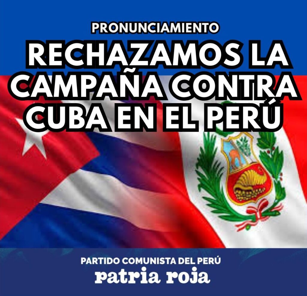 El Partido Comunista del Perú – Patria Roja, expresa su rechazo a las maniobras de sectores de la ultraderecha peruana, que como ya lo han hecho varias veces en el pasado, deslizan noticias falsas sobre la supuesta ingerencia de la Embajada de Cuba en el Perú en asuntos internos, señalando que la inteligencia cubana estaría detrás de acciones de “desestabilización y conspiración” contra el Estado peruano. Sobre ello, no aportan ninguna prueba salvo teorías conspiranoicas.